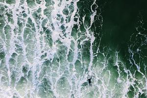 A surfer paddles back out after catching a wave. Salisbury, Massachusetts