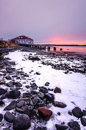 Lingering late April snow on a rocky beach. West Quoddy, Maine